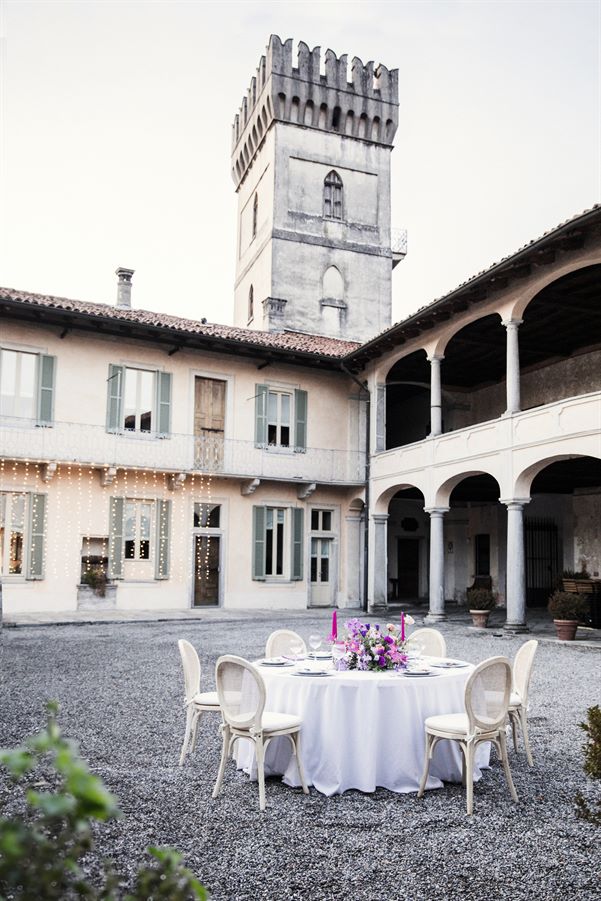 La corte di Villa Bossi è una location perfetta per un ricevimento che unisce glamour e tradizione, ideale per il tema “Love in Tulle”.