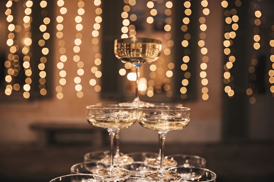 Tavola glamour: centrotavola, mise en place e champagne tower