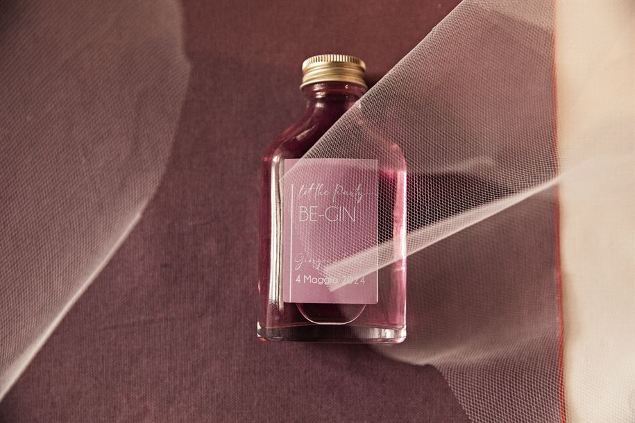 Per le bomboniere, la scelta di bottiglie di gin personalizzate rappresenta un dono originale e sofisticato, che offre agli ospiti un ricordo speciale del matrimonio. Personalizzate con etichette che riportano i nomi degli sposi e la data, queste bottiglie sono un dettaglio elegante e memorabile.