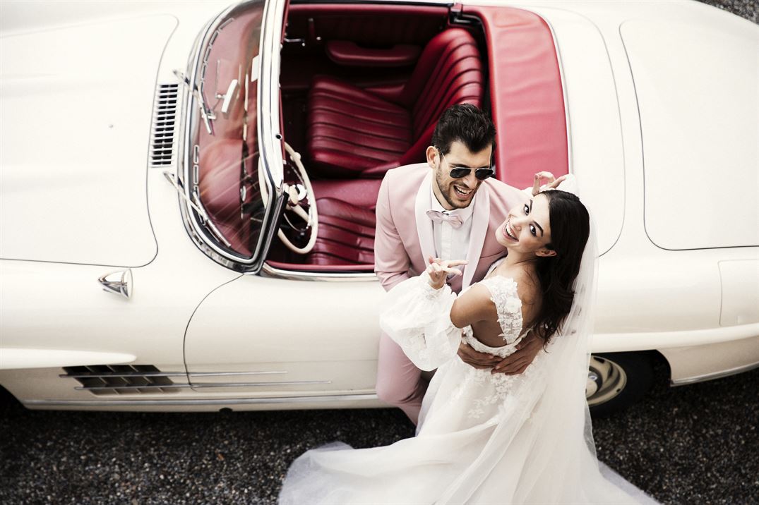 Un altro dettaglio memorabile per un matrimonio glamour è l’arrivo degli sposi in un’auto storica, un elemento che aggiunge fascino e tradizione.